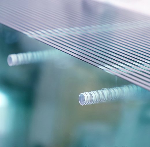 引進North Glass不同規格的鋼化爐生產線,其中Low-E玻璃采用先進的強制對流/輻射加熱式鋼化爐,利用熱風對流對玻璃進行傳導加熱,在短時間內將玻璃內外表層溫度均勻地加熱到鋼化溫度點(加熱速度大幅度提高加熱時間縮短30%)。克服了鍍膜玻璃對熱輻射反射造成鋼化加工難的技術難題,能確保鍍膜玻璃在加熱鋼化的過程中保持良好的平整度,減少了在普通鋼化爐生產時相對較長時間加熱造成的膜層損壞、輥道印、麻點等表面質量問題,因此所生產的鋼化玻璃具有更好的光學質量。