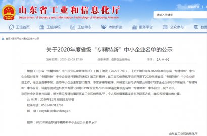 根據《山東省“專精特新”中小企業認定管理辦法》(魯工信發〔2020〕7號)、《關于組織申報2020年度山東省“專精特新”中小企業和對往年“專精特新”中小企業進行復核的通知》等文件精神,省工業和信息化廳組織開展了2020年度省級“專精特新”中小企業評選工作。經主管部門推薦、專家評審等程序,確定我公司為2020年度省級“專精特新”中小企業。