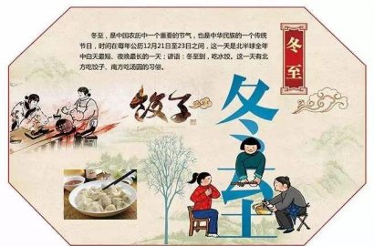二十四節氣中的第二十二個節氣。進入冬至節氣這一天,太陽直射南回歸線,北半球白天最短,黑夜最長,數九寒天從此開始。